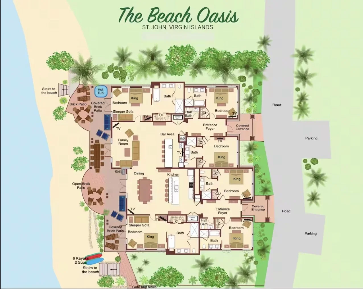 The Beach Oasis is located on the beach in the Upscale Chocolate Hole Estate